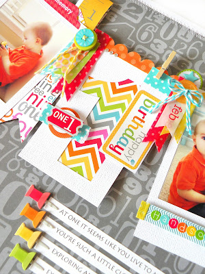 Those push pins/thumb tacks are so cute!!! I love how you used them for your journaling strips. The rainbow chevron is so pretty; this may be the best Doodlebug collection ever!!! Gorgeous LO of little man Brady :)